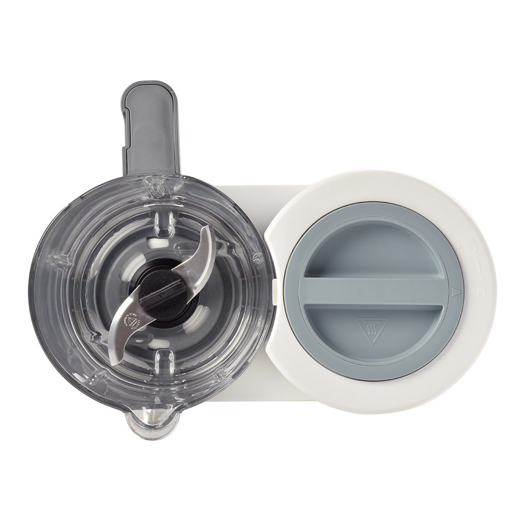 Uvařené suroviny lze následně snadno rozmixovat přímo v hlavní nádobě. Hrubost mixování si přizpůsobíš věku dítěte – od jemné kaše pro nejmenší až po hrubší strukturu s kousky. Jakmile se dítě naučí kousat, můžeš Babycook® využívat i pouze pro zdravé vaření v páře.
