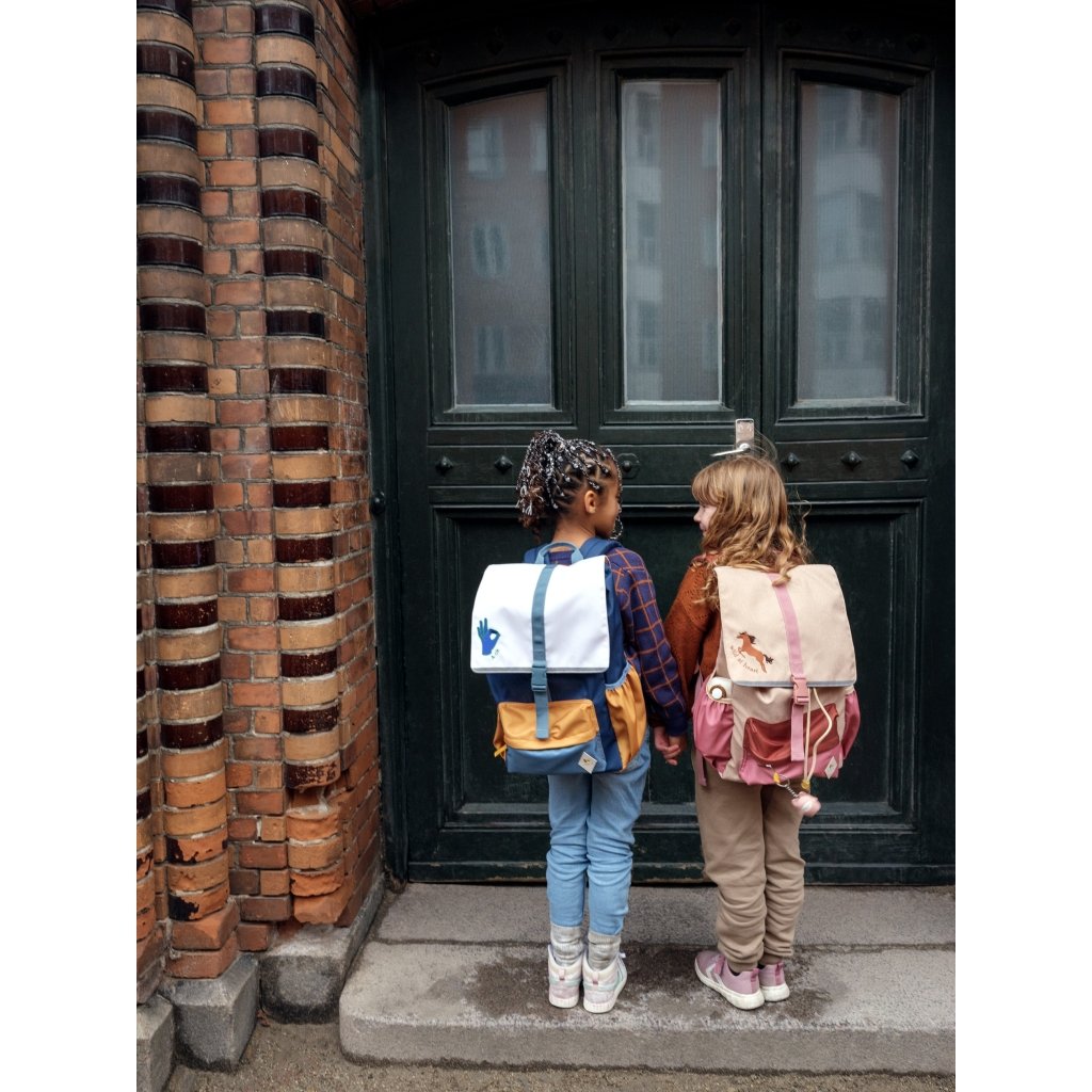 Fabelab's Backpack - Small - Wild at Heart je skvělý na malé výlety a dobrodružství. Batoh má přední kapsu se zipem na menší předměty a snadno se zapíná pomocí šňůrky a předního zapínání na klopu. Pro pohodlí a funkčnost jsou ramenní popruhy polstrované a pro optimální přizpůsobení je přidána křížová přezka na hrudi. Navíc jsou vpředu i vzadu umístěny reflexní detaily, které napomáhají viditelnosti dítěte. Uvnitř batohu jsou dvě samostatné kapsy vhodné na menší předměty a cool odznak ve tvaru diamantu, na který si můžete napsat své jméno.