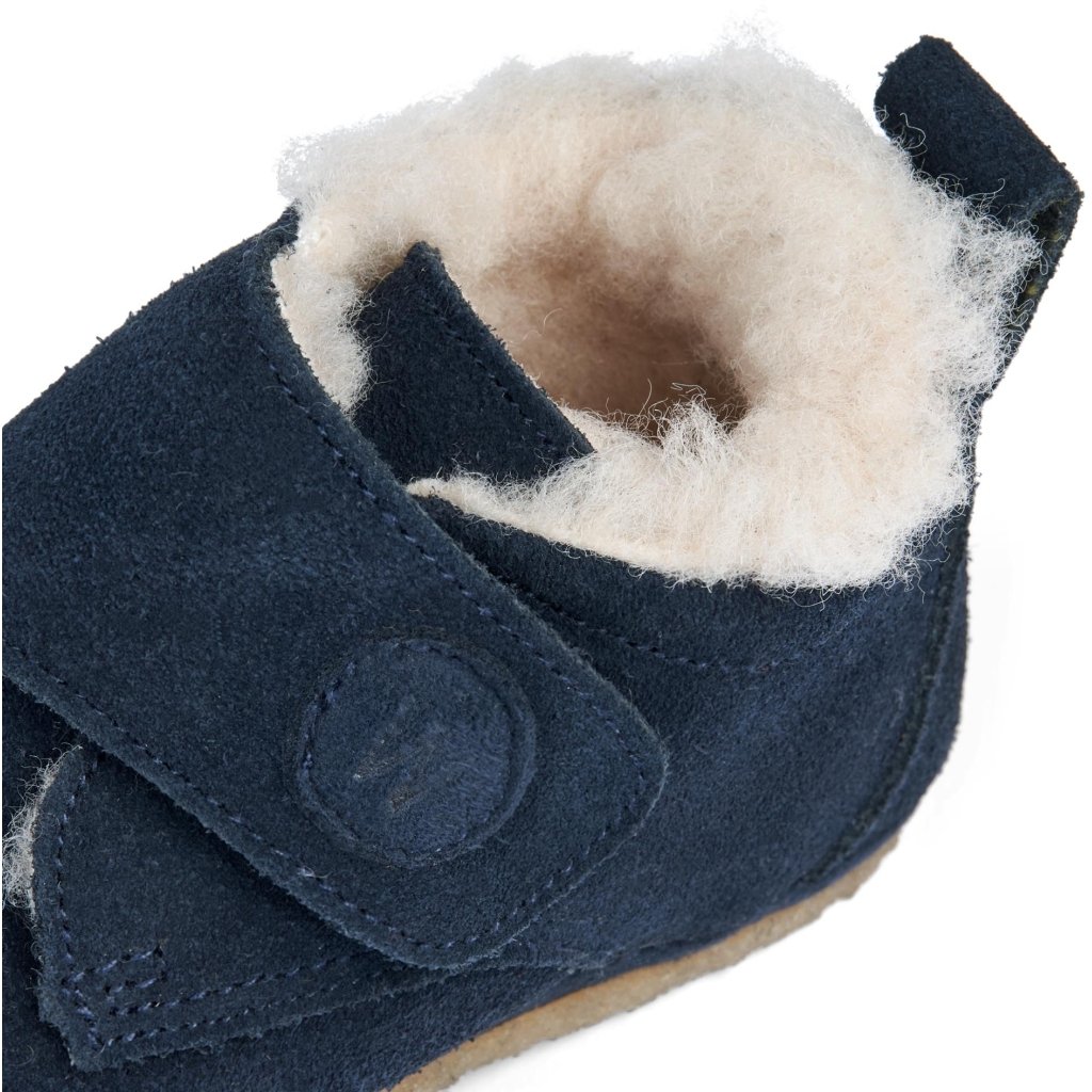 Tyto pantofle jsou vyrobeny ze semiše a kůže z certifikovaných koželužen LWG s vlněnou podšívkou, aby udržely nohy vašeho dítěte v teple během chladných podzimních a zimních měsíců. Mají vyjímatelné vložky vyrobené z latexu a potažené vlnou. Latex je přírodní produkt, který je prodyšný a pružný s trampolínovým efektem pro pohodlné kroky. Jsou proto ideální pro vnitřní hru a bubnování. Podešev je vyrobena z krepové pryže, která poskytuje dobrou trakci a je velmi flexibilní.