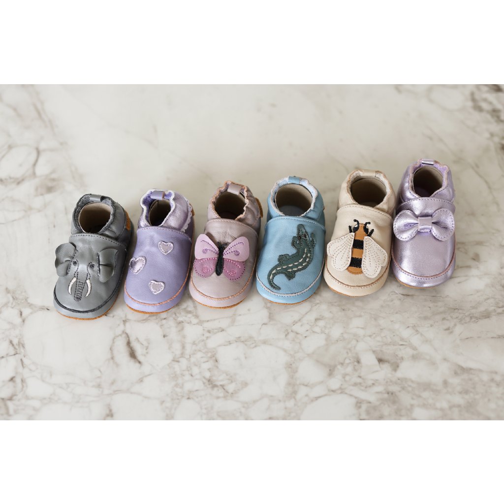 Vyrobeny z činěné ovčí kůže bez chromu a kovů, jsou krásně měkké, prodyšné a šetrné k citlivé dětské pokožce. Protiskluzová semišová podrážka zajistí stabilitu při prvních krůčcích i dovádění.