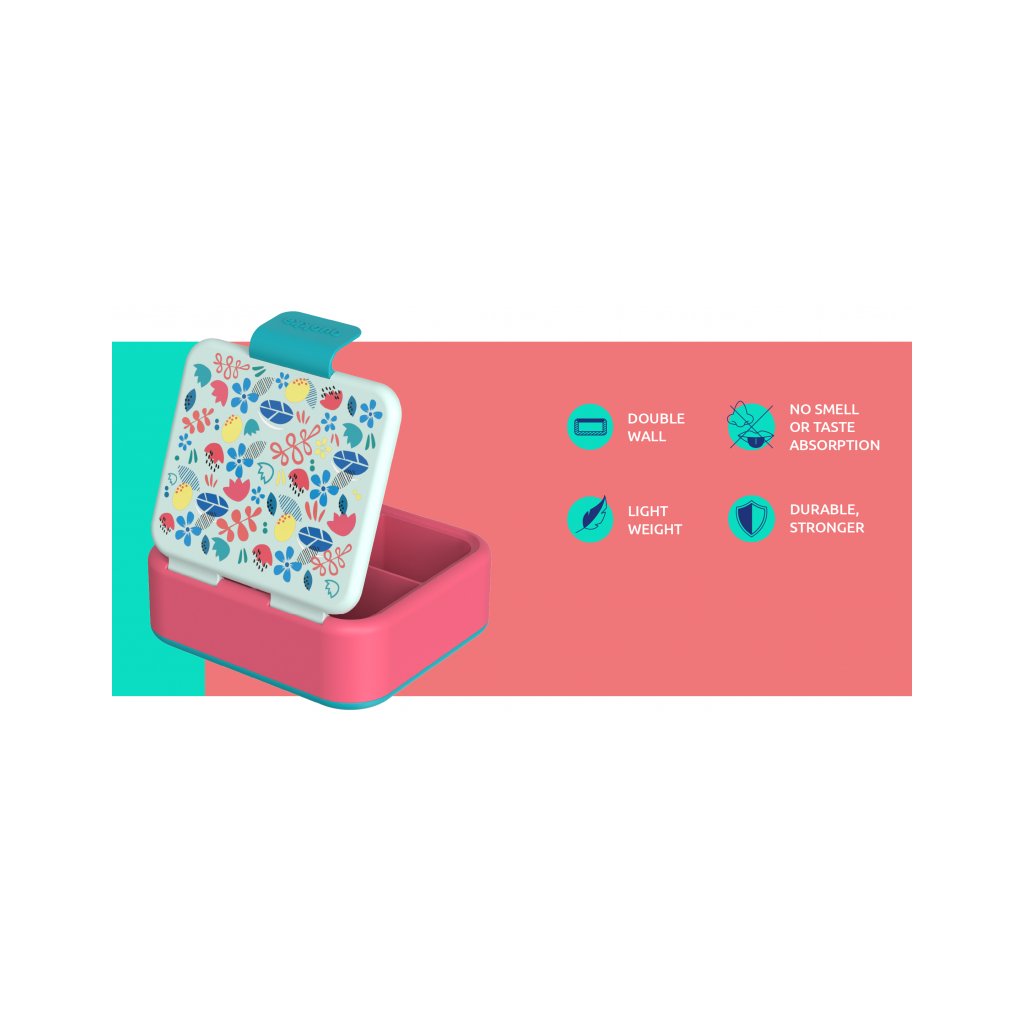 Dětský box na jídlo Quokka Twist Kids z vysoce kvalitního plastu je vhodný pro bezpečné přenášení svačiny do školy i na výlety. Box má stěny z dvojitého materiálu a spolehlivě těsnicí víko se zaklapávacím uzávěrem. Tři vnitřní přihrádky umožňují oddělit jednotlivé části svačinky.