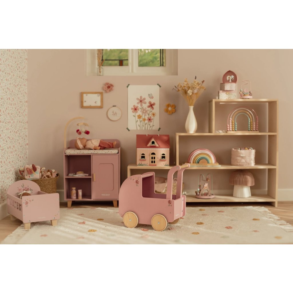 Kočárek je součástí kolekce vysoce kvalitních dřevěných hraček značky Little Dutch, které jsou navrhovány s důrazem na bezpečnost, funkčnost a originální design.