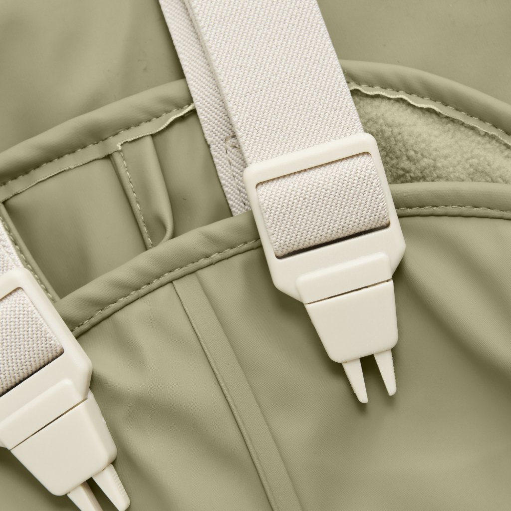 Praktické dětské kalhoty do deště od značky CeLaVi jsou vyrobeny z recyklovaného polyesteru s PU zátěrem, který zajišťuje plnou nepromokavost s vodním sloupcem 10 000 mm. Díky měkké fleecové podšívce udrží děti v teple a pohodlí i během chladných a deštivých dnů. Odolný materiál je navíc částečně recyklovaný a šetrný k přírodě.