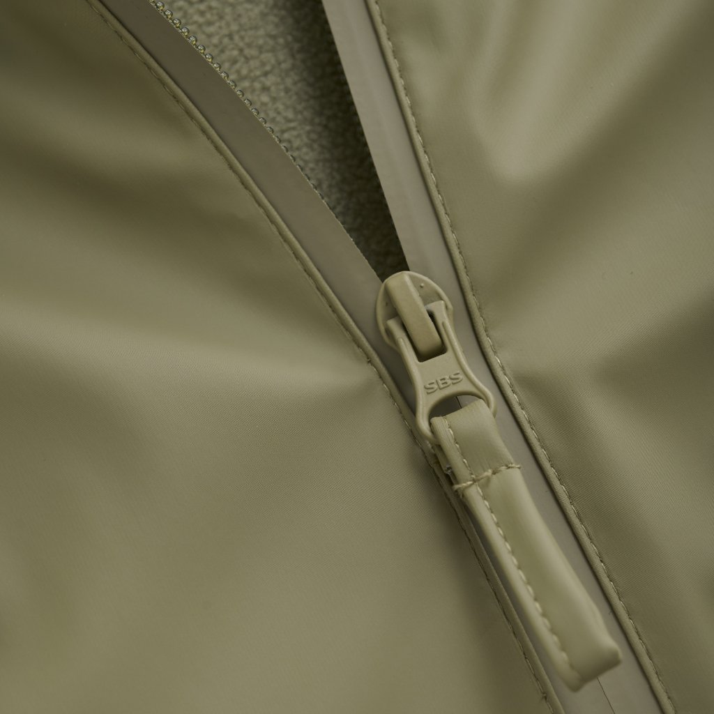 Funkční pláštěnka od značky CeLaVi spojuje odolnost a pohodlí, takže je ideální volbou pro deštivé podzimní a zimní dny. Vyrobena je z recyklovaného polyesteru s PU zátěrem, který zajišťuje nepromokavost s vodním sloupcem 10 000 mm. Uvnitř je měkká fleecová podšívka, která zahřeje a zajistí maximální komfort.