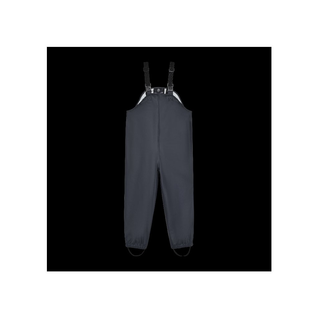 Kalhoty mají praktický laclový střih s nastavitelnými elastickými kšandami a zapínáním na bokách, což umožňuje snadné oblékání i přizpůsobení rostoucím dětem. Elastické zakončení nohavic zajišťuje, že kalhoty dobře drží u bot a nepropustí vodu ani bláto. Reflexní prvky zvyšují bezpečnost dětí při snížené viditelnosti.