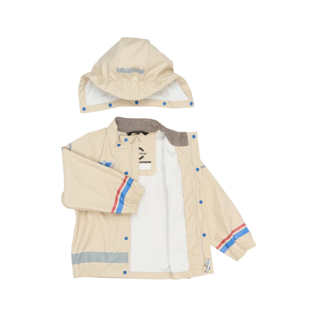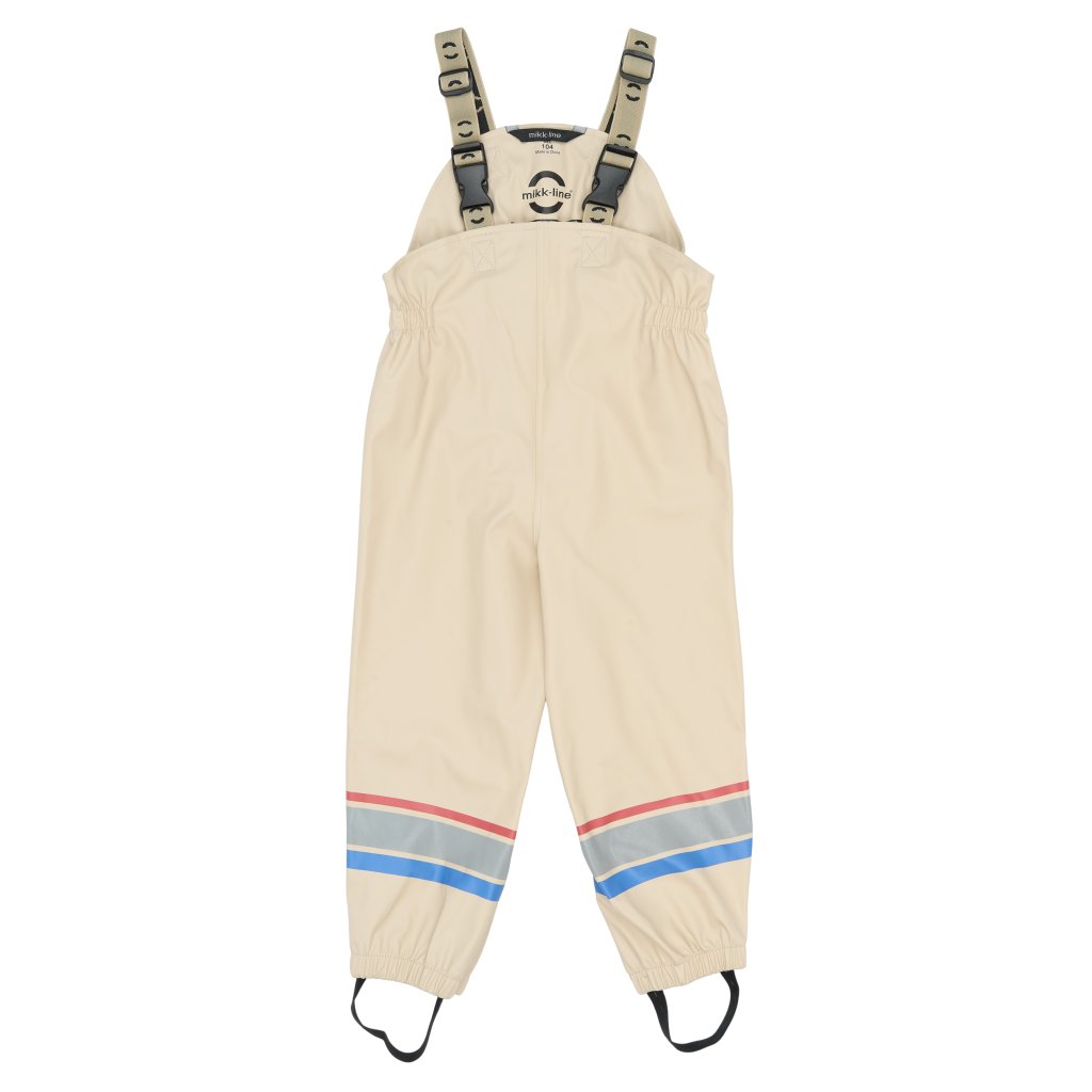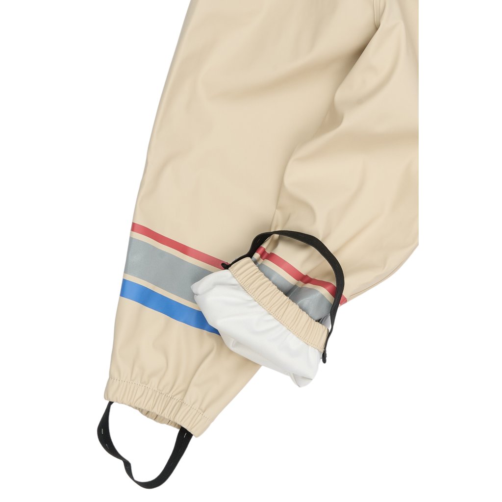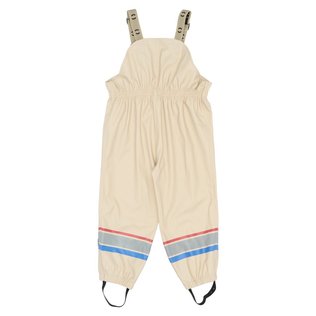Kalhoty mají nastavitelné pásky pod boty, takže nohavice zůstanou na svém místě i při skákání do kaluží. Reflexní prvky zvyšují viditelnost dítěte a praktická jmenovka umožní soupravu snadno označit do školky.