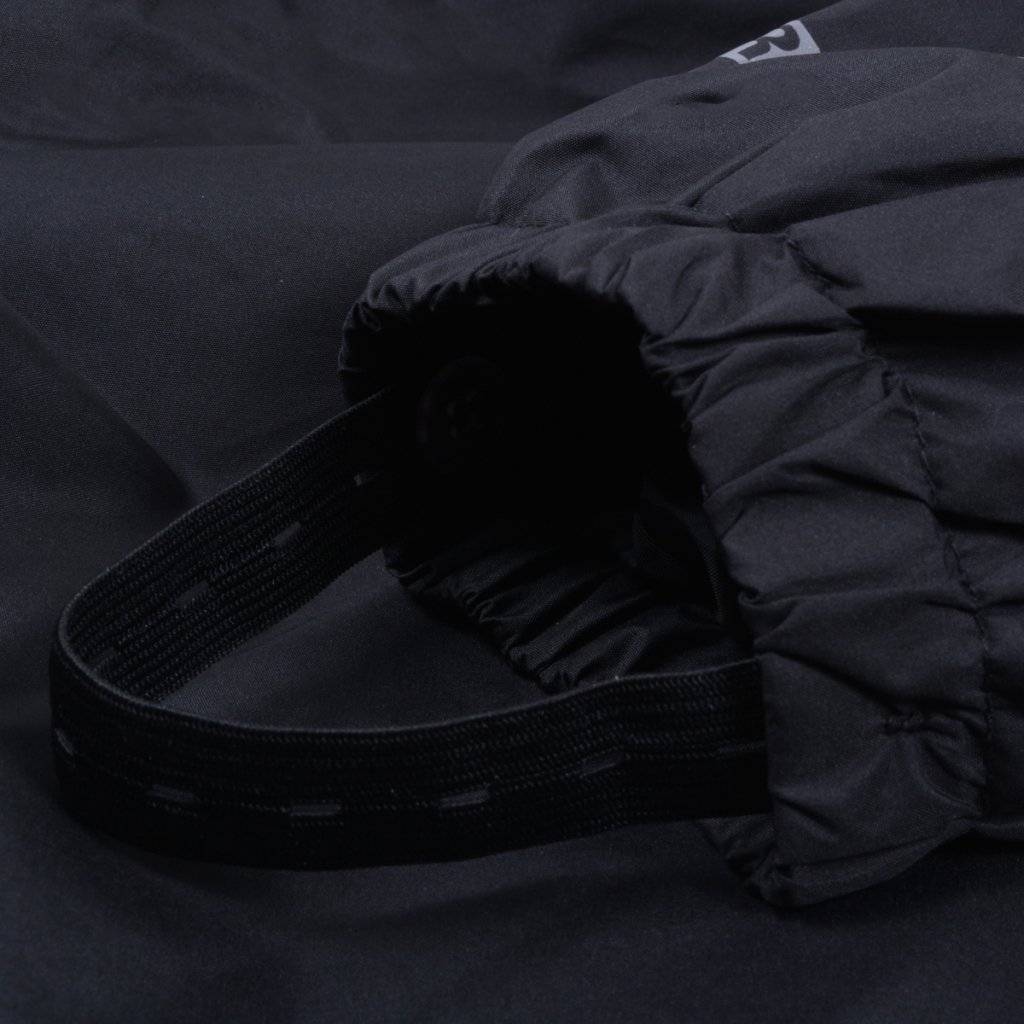 Mikk-Line - set bundy a kalhot do deště. Vyroben ze 100% recyklovaného polyesteru. Dodáván v praktickém vaku ze stejného materiálu. Je vodě a větru odolný (tlak vodního sloupce 5000 mm). Má pevně svařované švy. Ve spodní části mají kalhoty gumičky, které udrží nohavice na svém místě, brání vyhrnutí. V pase jsou kalhoty elastické. Bunda má odnímatelnou kapuci. Dvojí zapínání, pomocí zipu a pomocí druků, zabrání proniknutí chladu dovnitř. Na konci rukávů jsou elastické manžety. Uvnitř má praktický štítek pro uvedení jména majitele oděvu. Oblek je vybaven reflexními prvky.