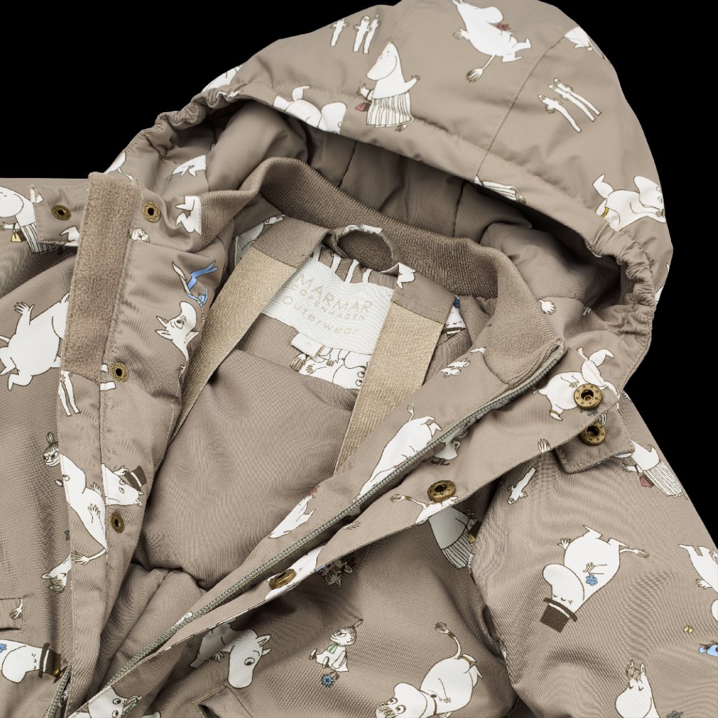 Hřejivá a funkční zimní kombinéza značky MarMar Copenhagen, navržena pro aktivní děti, které se nebojí zimního dobrodružství. Elegantní béžový design s oblíbenými postavičkami Mumínků působí hravě a nadčasově.