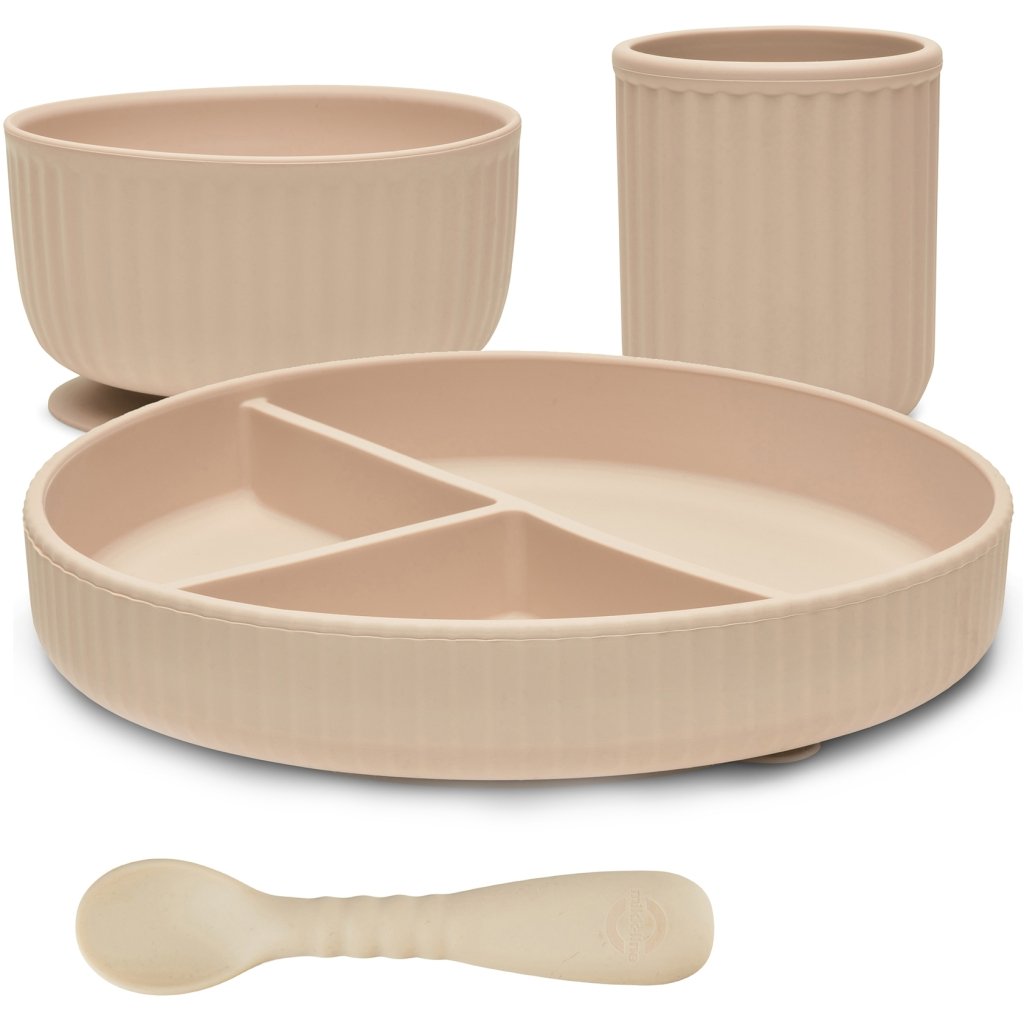 - The dining set includes 4 pieces - plate, bowl, cup and spoon