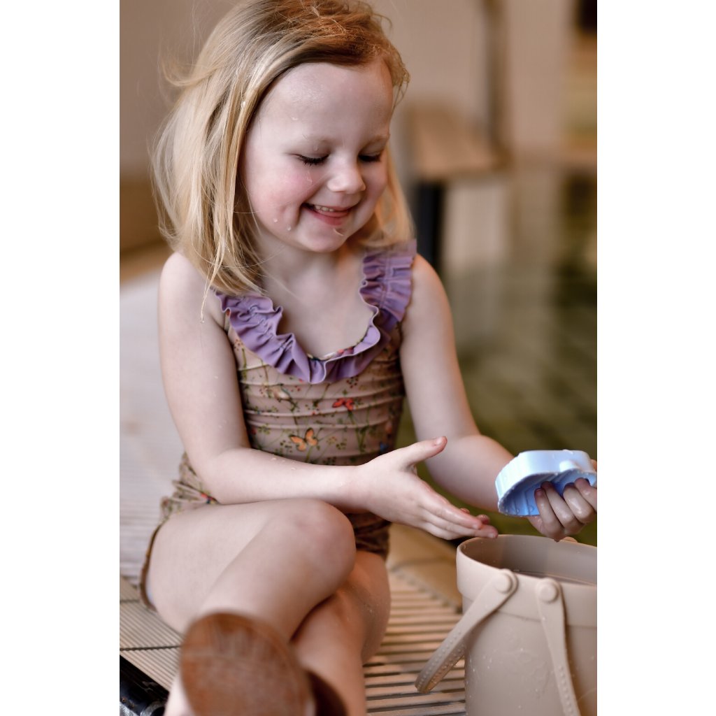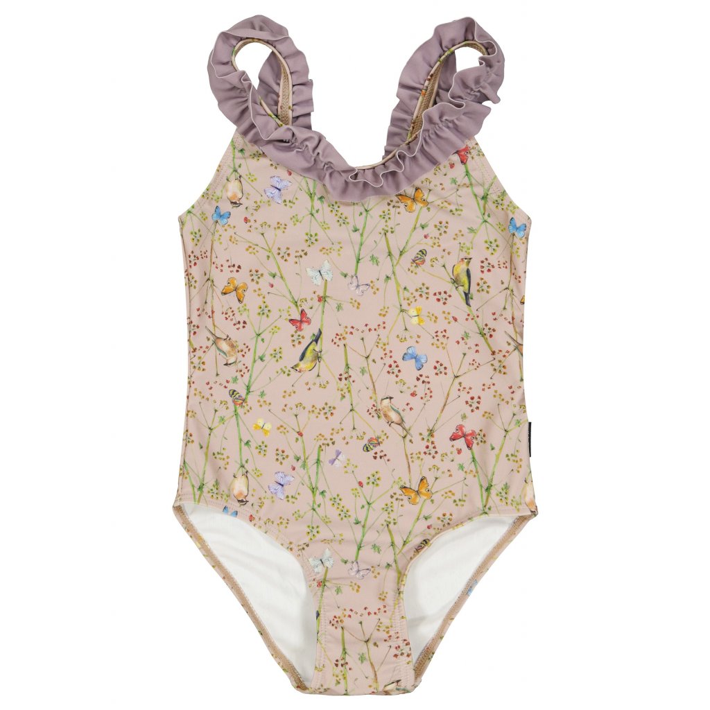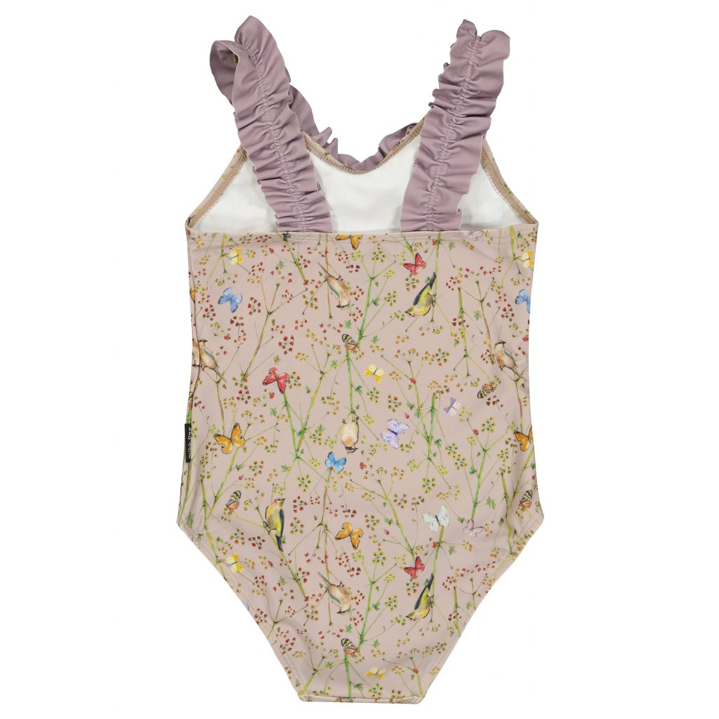 made mostly from recycled polyester. The swimsuit features a beautiful all-over print of flowers, butterflies and birds. They are soft, flexible and comfortable to wear,