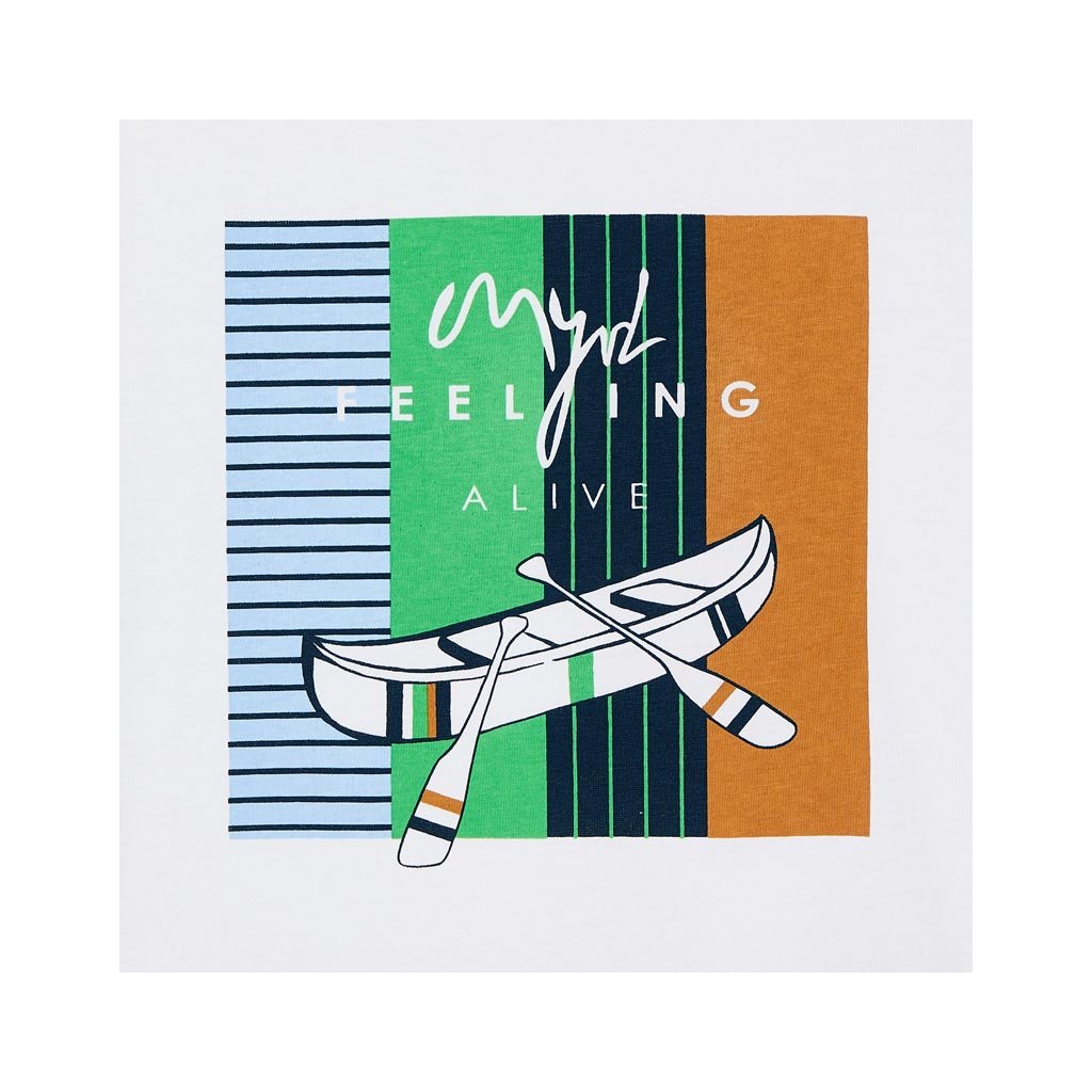 Mayoral set of two boys' T-shirts - one short-sleeved and one long-sleeved. Classic cut, round neckline, made from pure cotton material. Decorated with an image and lettering.