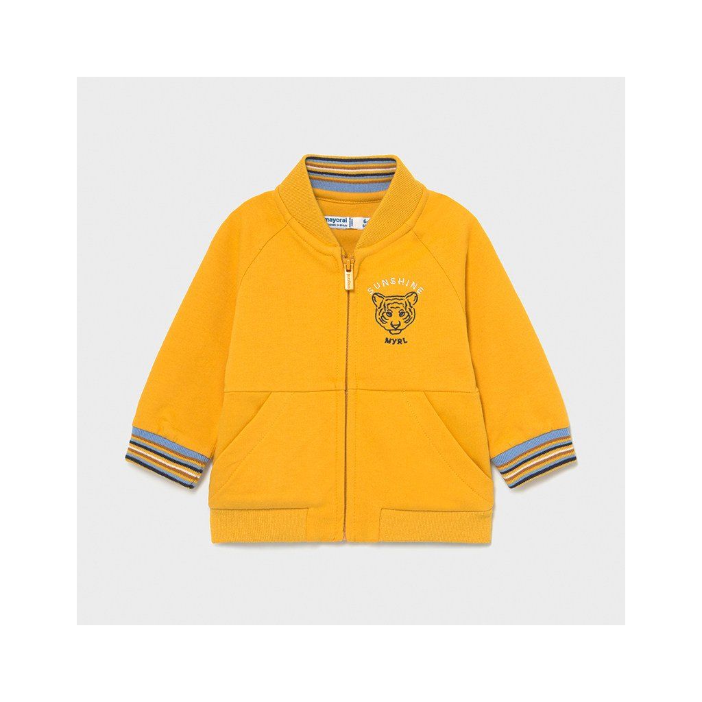 Mayoral boy's hoodless sweatshirt. Zip fastening. Pleasant soft material. There are elastic cuffs at the end of the sleeves.Front functional pockets.