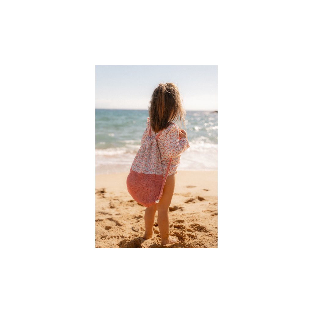 Plážový vak je ideální pro pohodlné nošení plavek, ručníku a pod. na pláž i do bazénu. Dvojité stahovací šňůrky umožňují nošení jako batoh, díky poutku jej snadno např. zavěsíte na věšák v šatně. Spodní část ze síťoviny umožňuje rychlejší schnutí mokrých plavek.