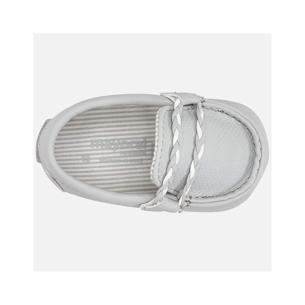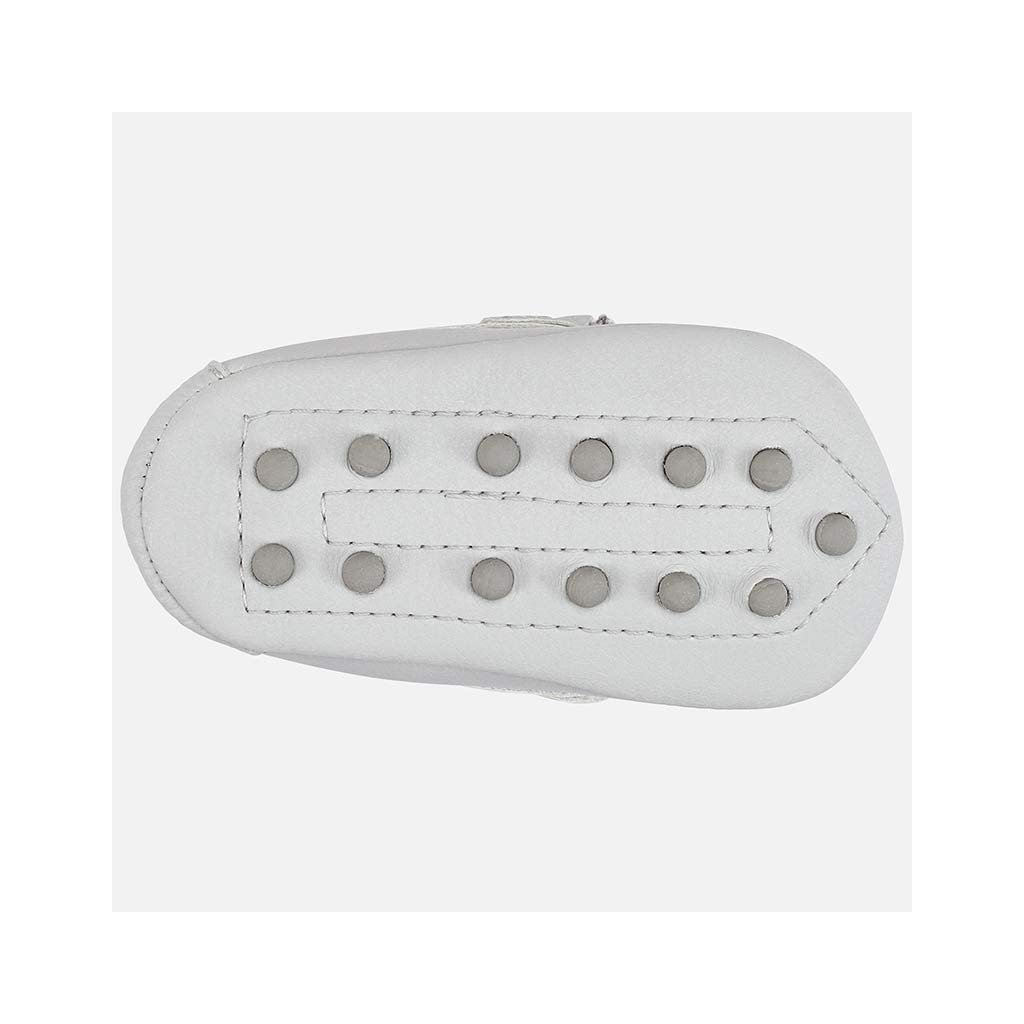 Dětské novorozenecké capáčky Mayoral. Elegantní mokasíny pro novorozeného chlapečka. Nadčasová bota, ideální pro speciální příležitosti. Protiskluzová podešev s gumovými aplikacemi pro posílení přilnavosti při chůzi.