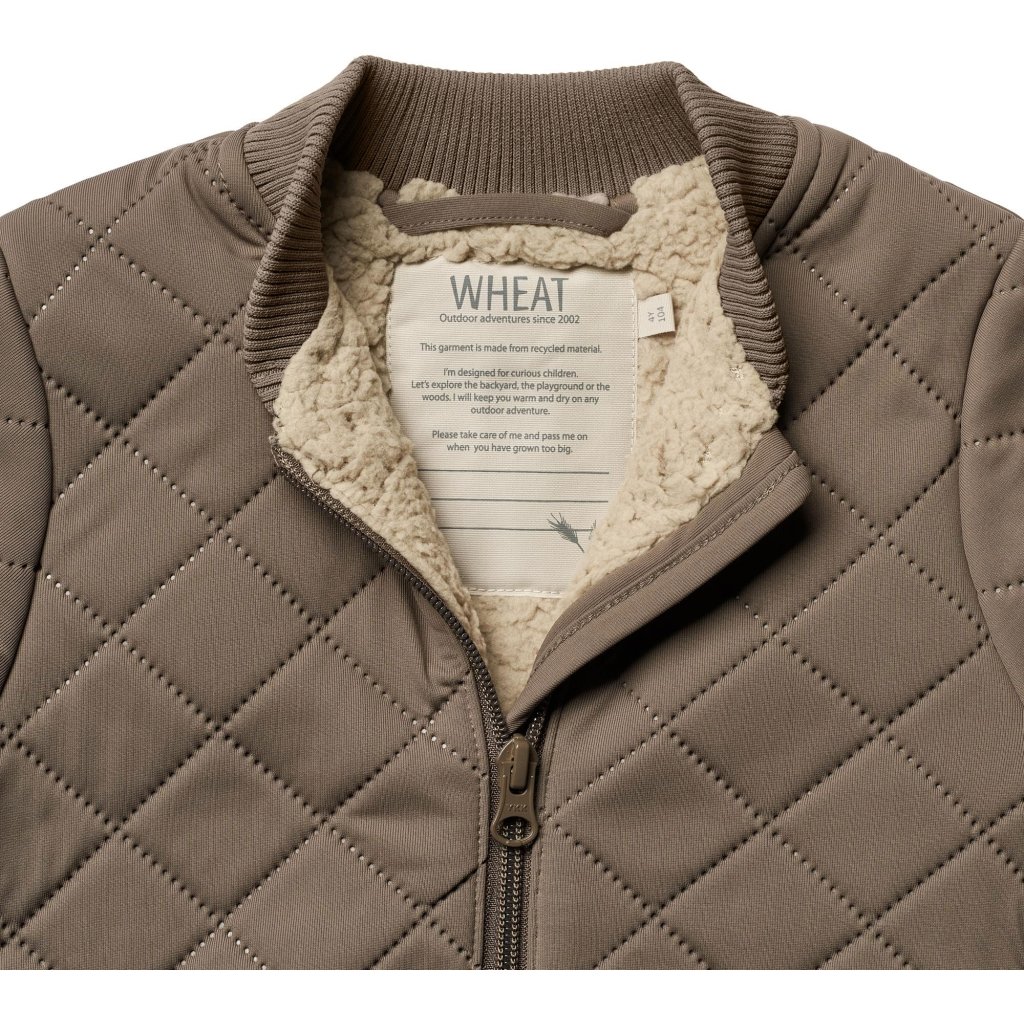 Wheat termo oblečení pro děti je měkké a lehké. Termo bunda je vyrobena ze 100% recyklovaného polyesteru a lze ji použít jako příjemnou vnitřní vrstvu i jako praktické přechodné svrchní oblečení. Není voděodolný, ale odpuzuje vodu a je vhodný do vlhkého podzimního počasí.