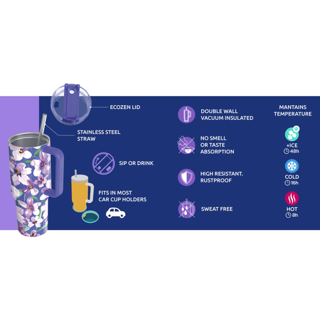 Díky vyjímatelnému nerezovému brčku se snadno pije, aniž byste museli hrnek naklánět. Spolehlivý uzávěr z kvalitního Ecozen plastu chrání obsah před vylitím a umožňuje pít přímo z hrnku i bez brčka. Široké hrdlo usnadňuje vkládání kostek ledu a zároveň zajišťuje jednoduché čištění.