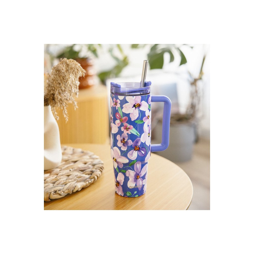 Quokka Nerezový termohrnek s brčkem Stream flower dusk 950 ml TERMO