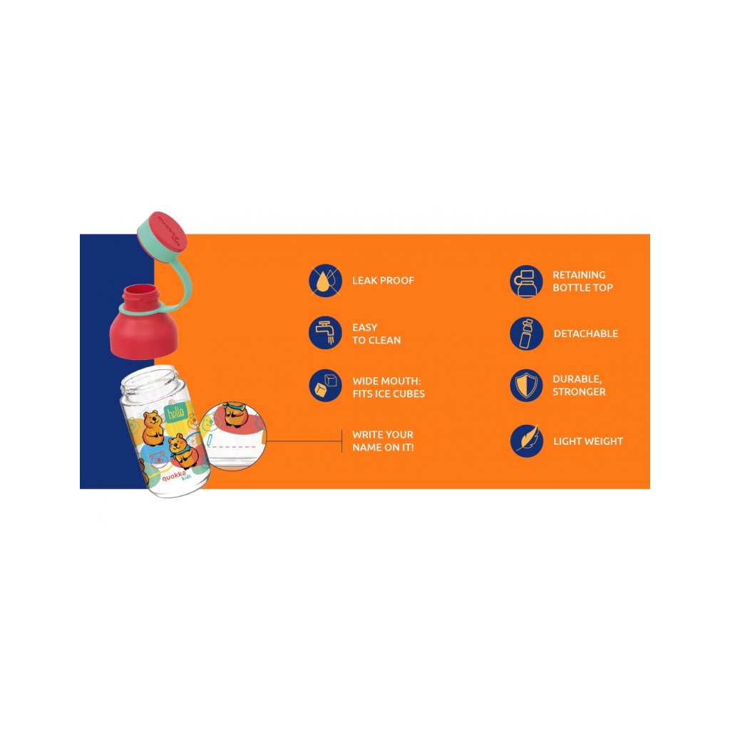 Dětská láhev Quokka Ice Kids s dvojitým otevíráním umožňuje vložení kostek ledu či kousků ovoce a zároveň se snadno čistí. 100% těsnicí, šroubovací uzávěry chrání obsah láhve před vylitím. Poutko usnadňuje přenášení a zároveň chrání uzávěr před ztracením.