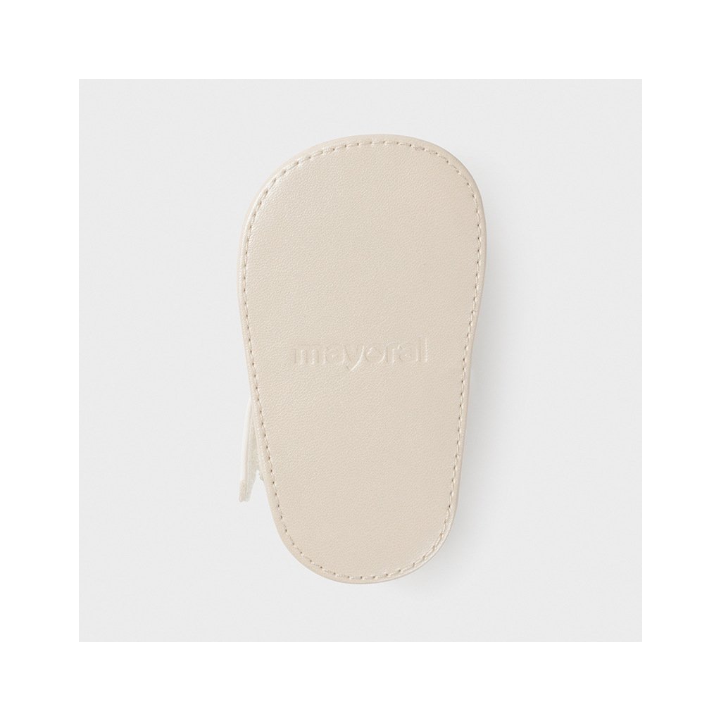 Mayoral dievčenské novorodenecké sandálky. Pohodlná mäkká podrážka pre topánky s veľkou priľnavosťou. Nastaviteľné zapínanie na suchý zips pre rýchle a jednoduché obutie. Zdobené drobnými motýlikmi.
