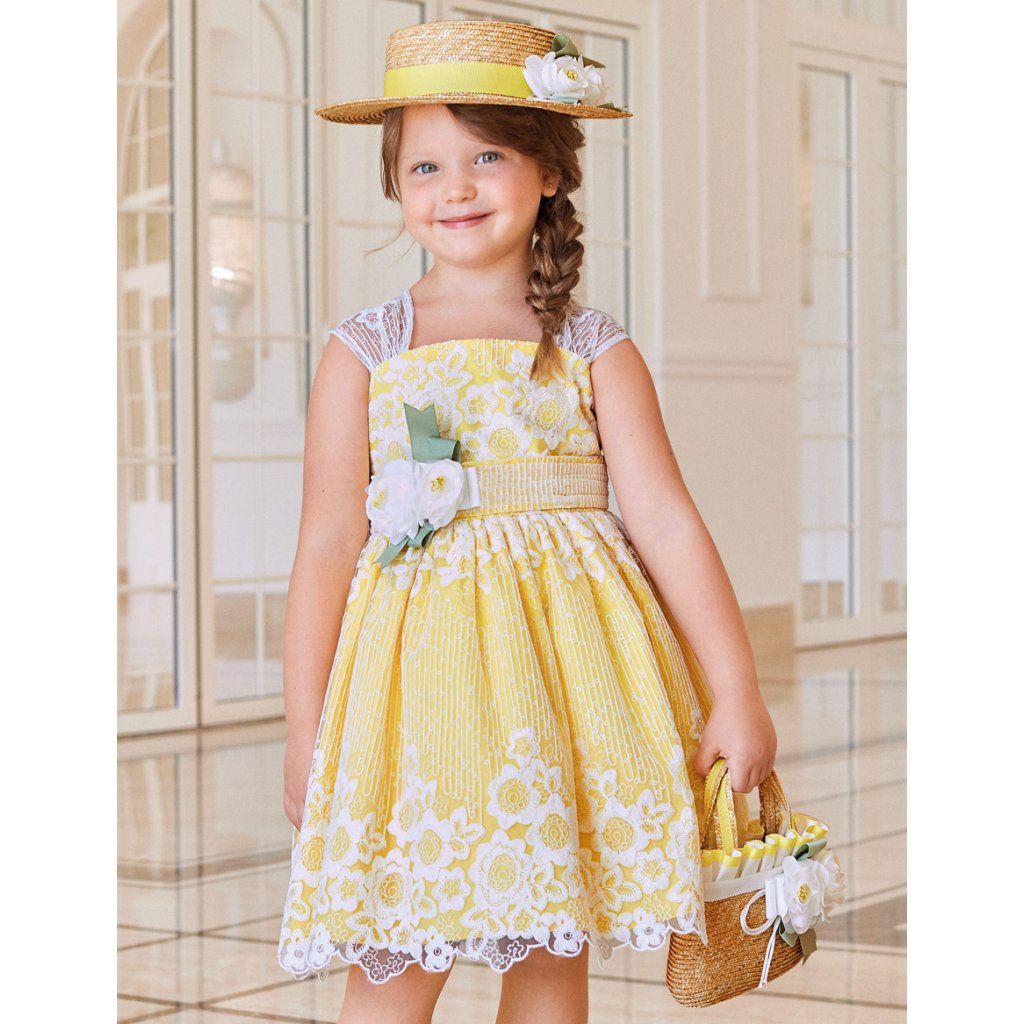 Abel & Lula nádherné dievčenské slávnostné šaty s vyšívanou organzou a podšívkou s kankánovým tylom, ktorá im dodáva objem. Zložená suknička, zaujímavo riešené ramená. Zapínanie pomocou skrytého zipsu v zadnej časti. Šaty sú doplnené šerpou s kvetinovou aplikáciou.