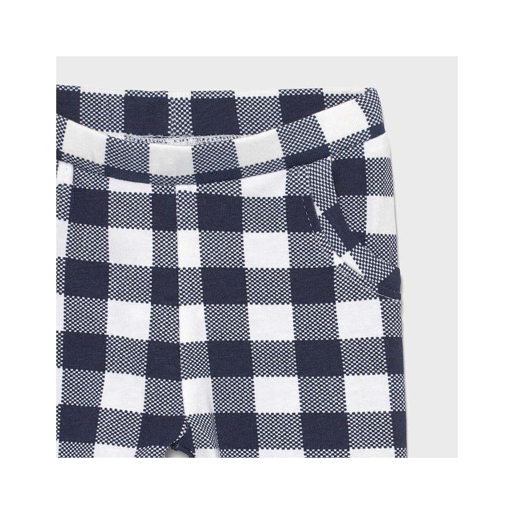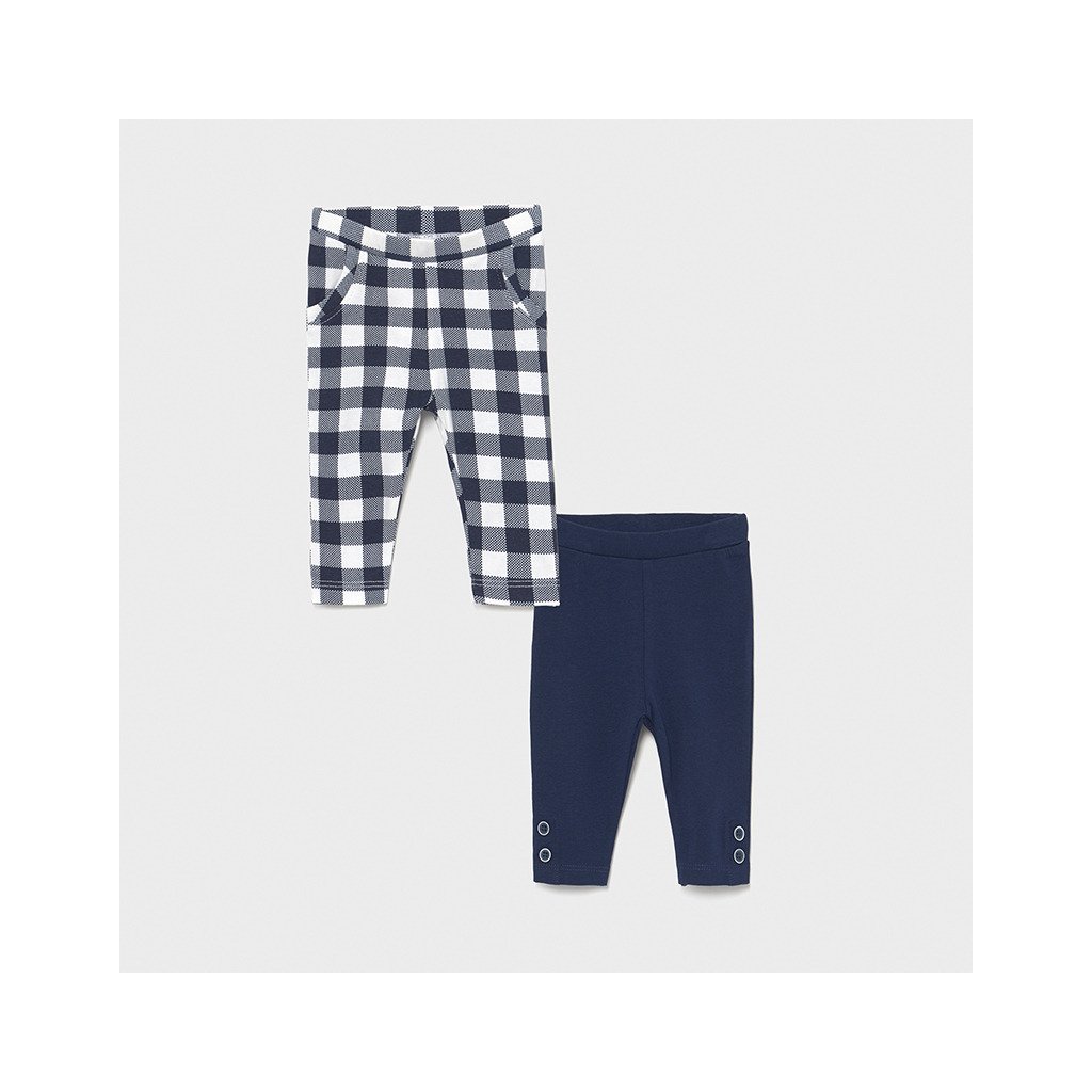 Mayoral novorodenecký dievčenský set dvoch kusov legín. Vyrobené z bavlneného materiálu, príjemné na tele, krásne obopnú postavu. V páse pružné. Jedny kárované, s vreckami. Druhé jednofarebné, v spodnej časti zdobené gombíkmi.