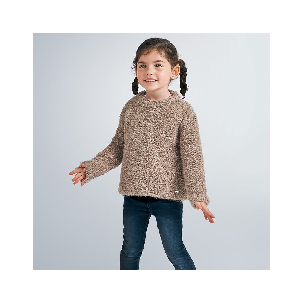 Dievčenský, teplý, huňatý sveter. Vhodný do chladných dní. Skvele doladí oblečenie vášmu dievčatku.