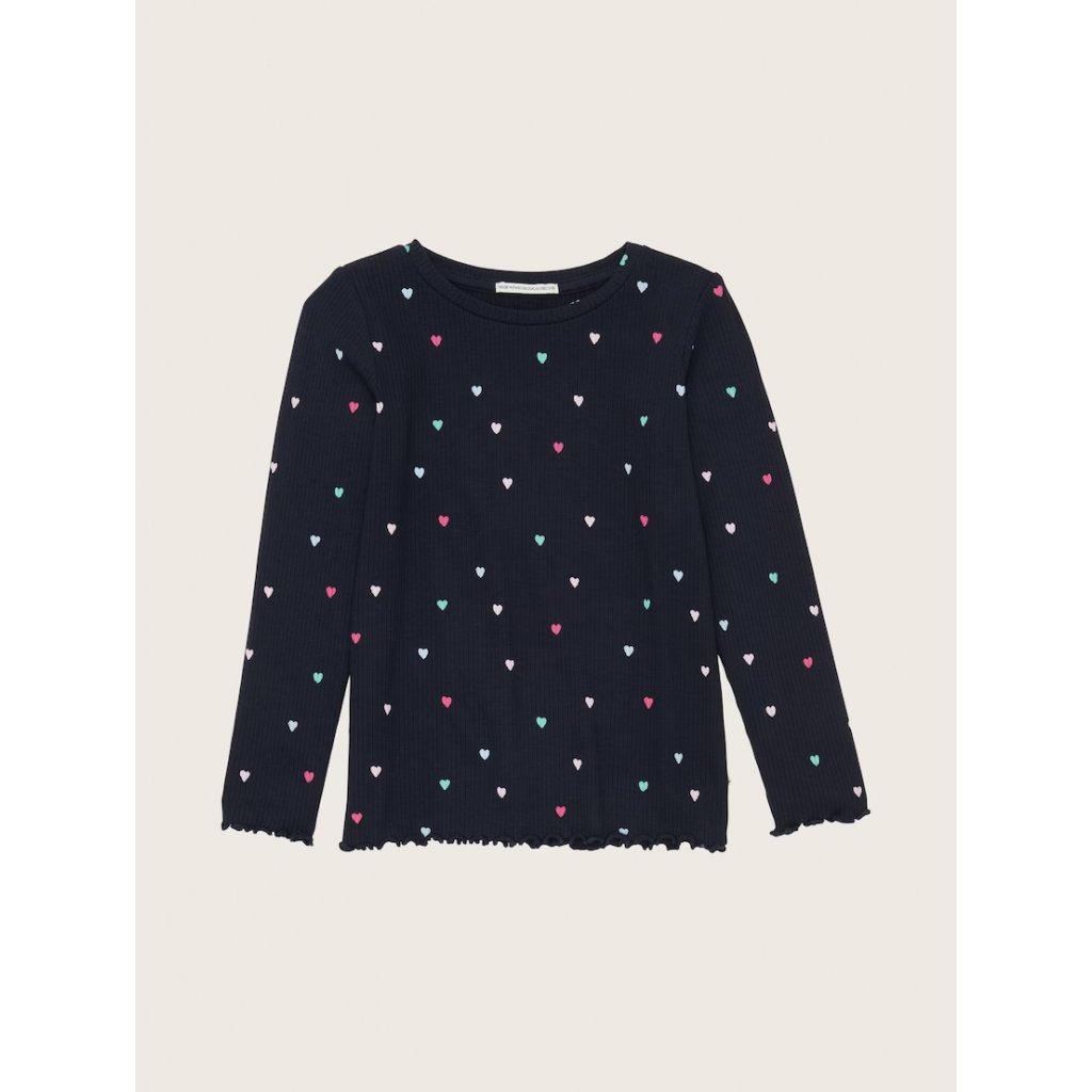 - dievčenské tričko s dlhým rukávom a potlačou srdca