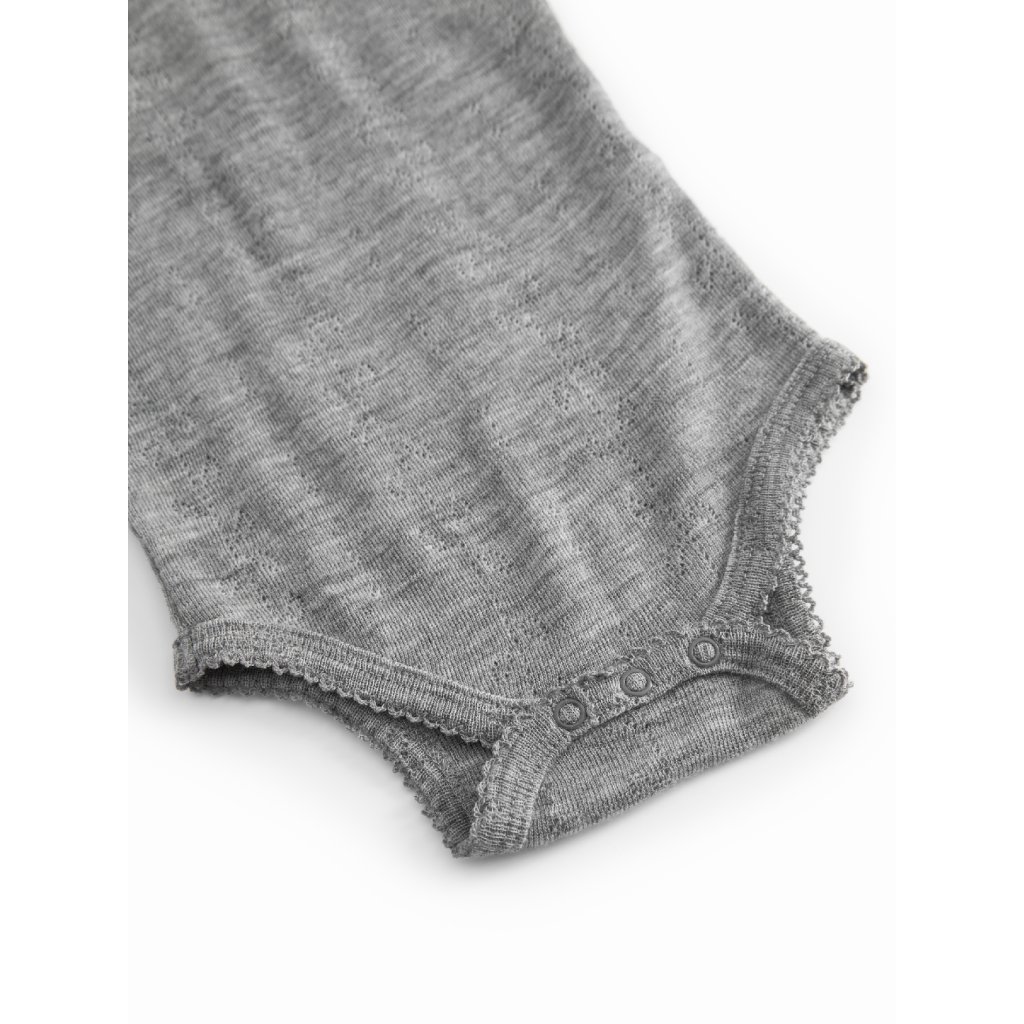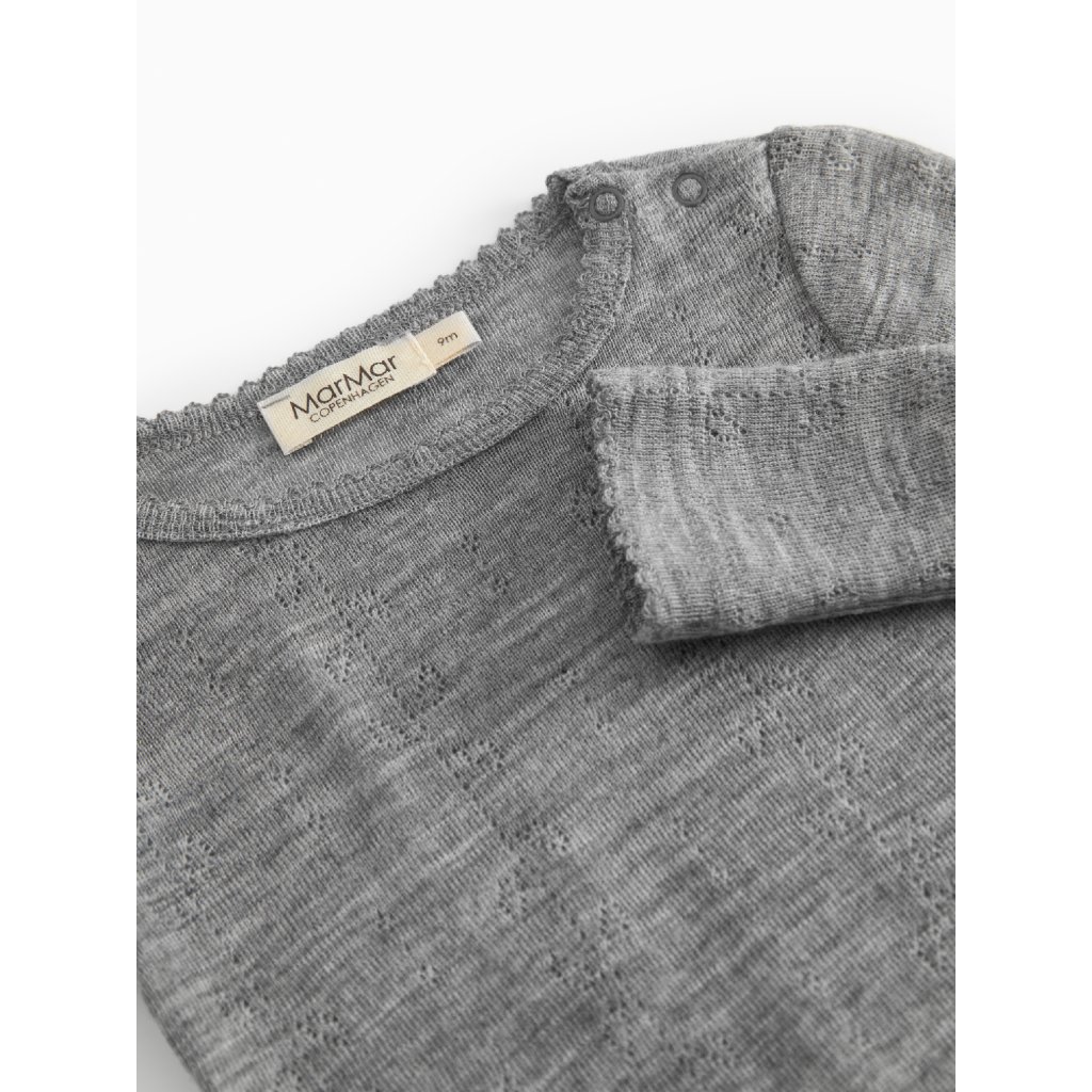 Tento krásný body od značky MarMar Copenhagen je vyroben z jemné směsi merino vlny a viskózy, která je mimořádně hebká, prodyšná a příjemná k citlivé dětské pokožce. Jemný žakárový pointelle vzor dodává body elegantní vzhled a zároveň zajišťuje lehkost a pružnost materiálu.
