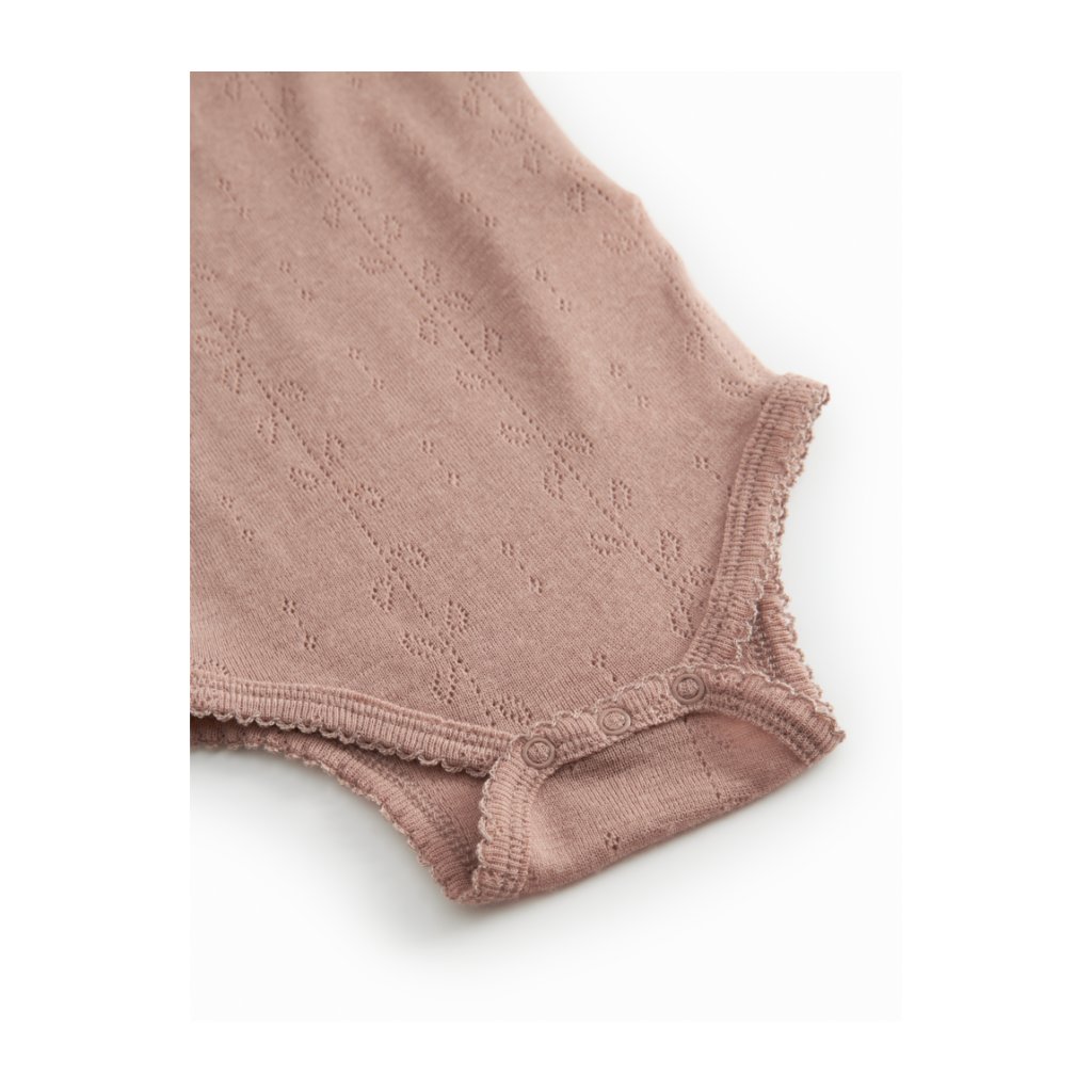 Krásné dětské body s dlouhým rukávem vyrobené ze 100 % merino vlny. Jemný pointelle úplet s drobným vzorem a ozdobným pikotkovým lemováním dodává body elegantní vzhled. Díky vlastnostem merino vlny je body měkké, prodyšné a skvěle reguluje teplotu – zahřeje v chladnu a odvádí vlhkost při aktivitě. Praktické zapínání na patentky na ramínku a v rozkroku usnadňuje převlékání i přebalování.